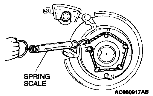 4) Use a spring scale to measure the hub torque with pads installed in the same direction as earlier.