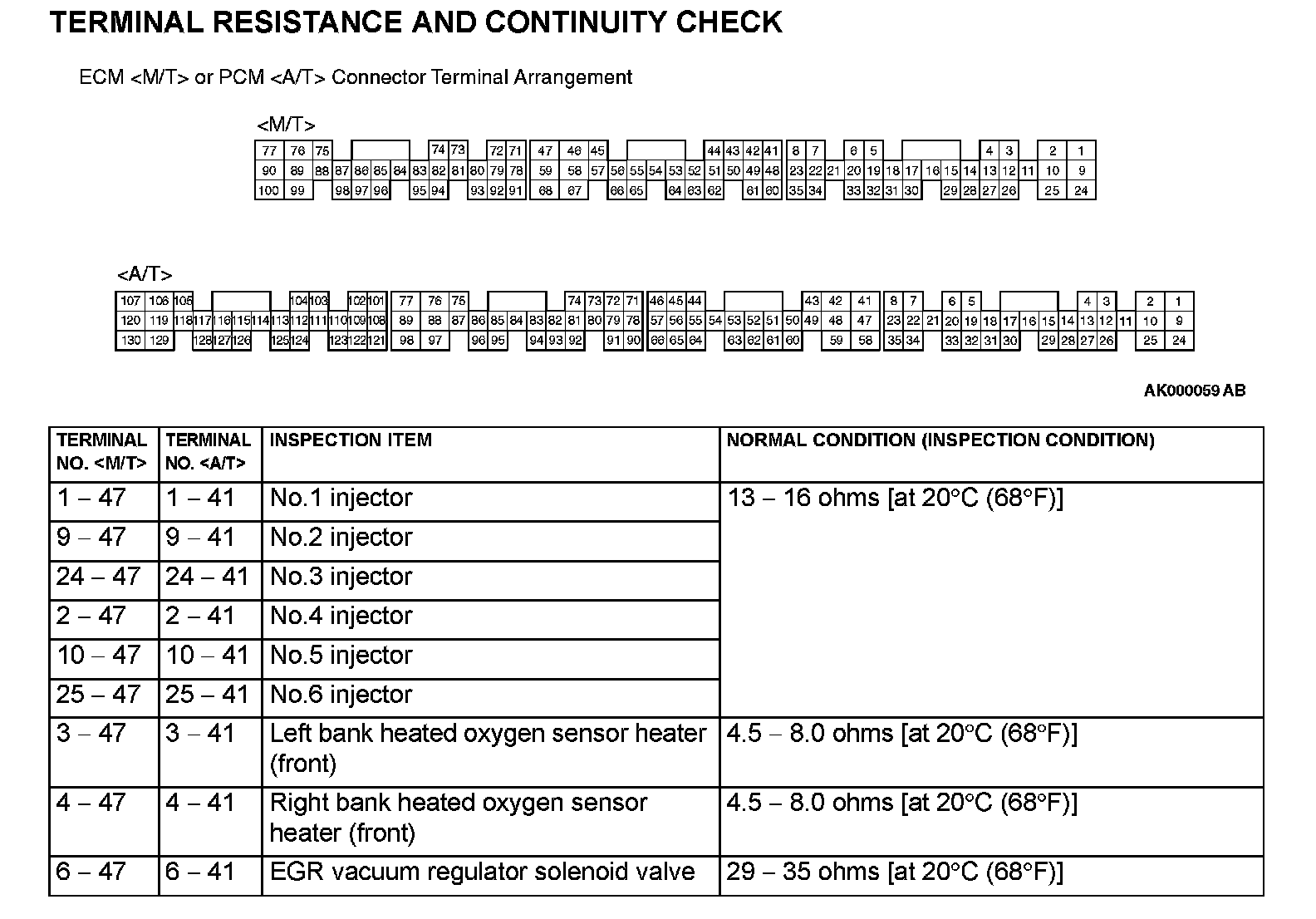 ECM <M/T> Or PCM <A/T> Connector Terminal Arrangement Part 1: