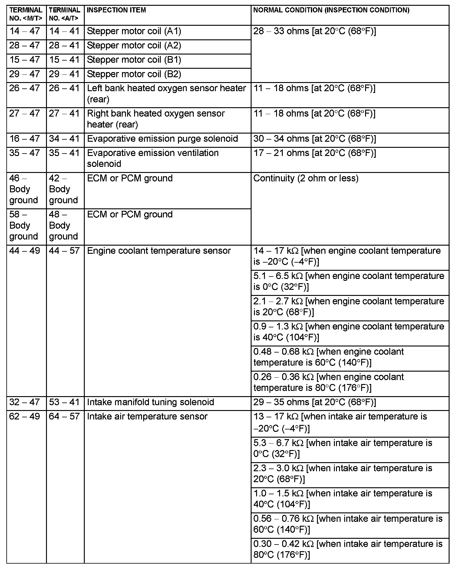 ECM <M/T> Or PCM <A/T> Connector Terminal Arrangement Part 2: