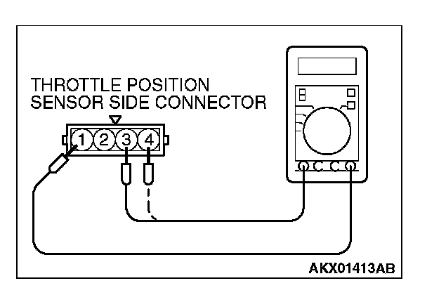 3. Measure the resistance between throttle position sensor side connector terminals No. 1 and terminal No. 3.