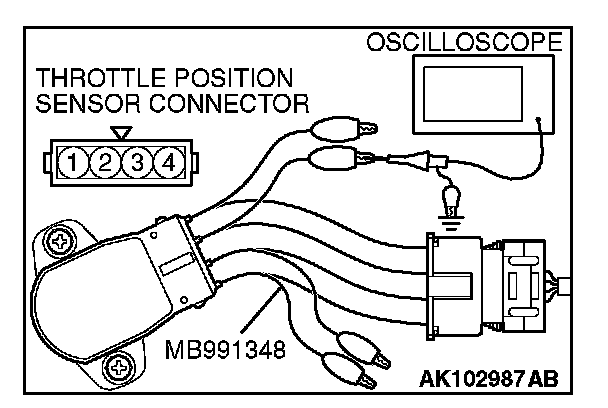 2. Connect the oscilloscope probe to the throttle position sensor side connector terminal No. 3.