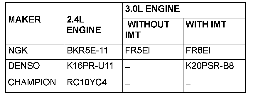 SPARK PLUGS (REPLACE)CAUTION: Iridium plugs are used on 3.0L engine. Use care not to damage the iridium tips of the iridium plugs. Do not attempt to adjust the gap on these plugs.