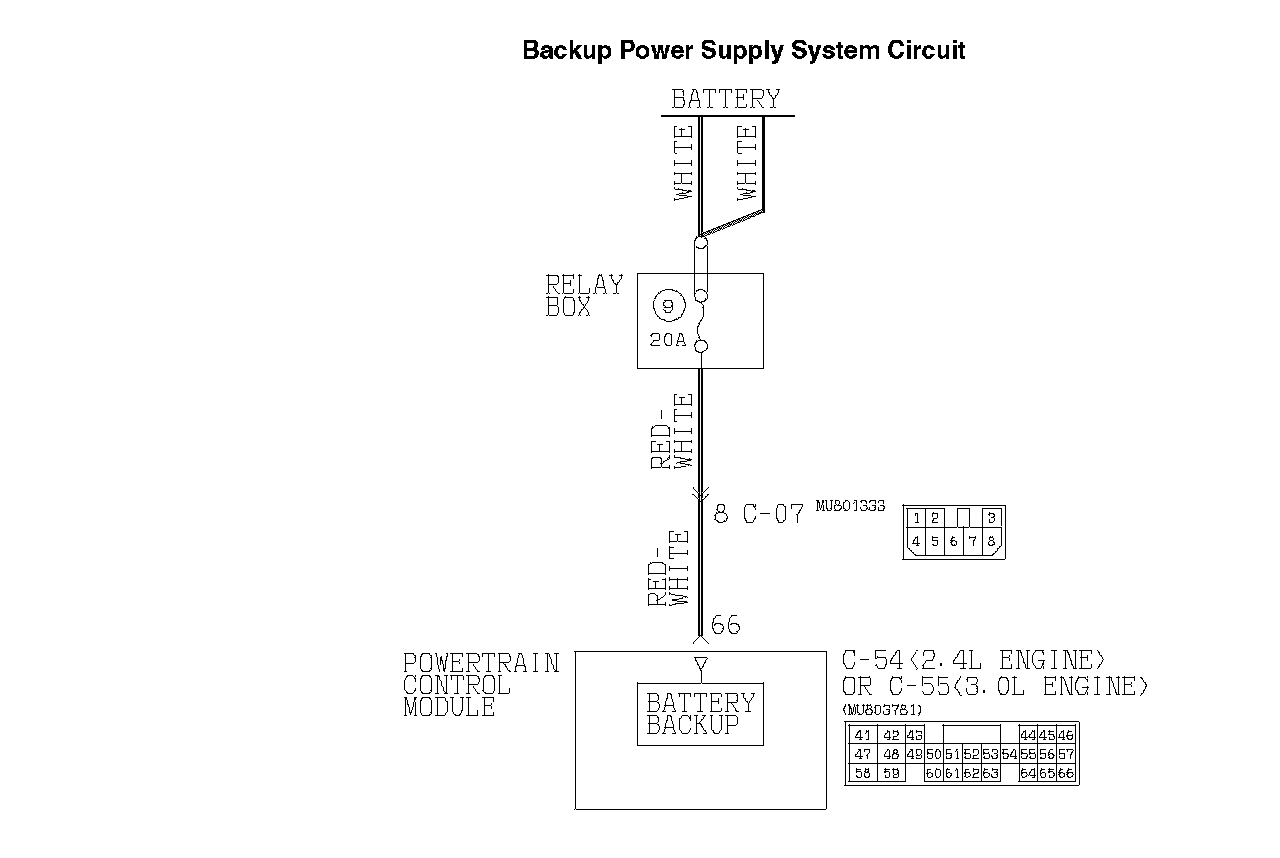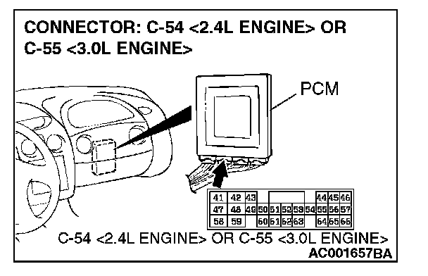 STEP 4. Check the harness for open circuit between PCM connector C-54 <2AL Engine> or C-55 <3.0L Engine> terminal 66 and battery.