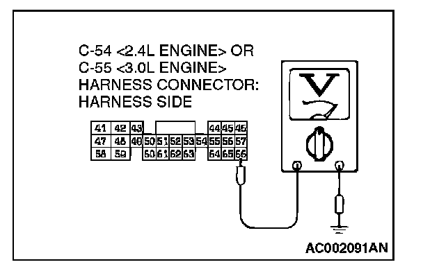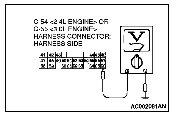 STEP 2. Measure the backup power supply voltage at PCM connector C-54 <2.4L Engine> or C-55 <3.0L Engine> by backprobing.