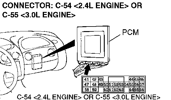 1. Do not disconnect connector C-54 <2.4L Engine> or C-55 <3.0L Engine>.