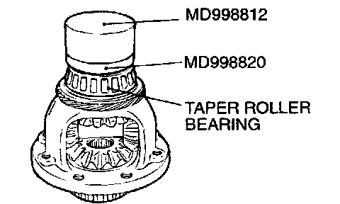 Using special tools MD998812 and MD998820, press install the taper roller bearing with the press.