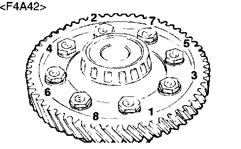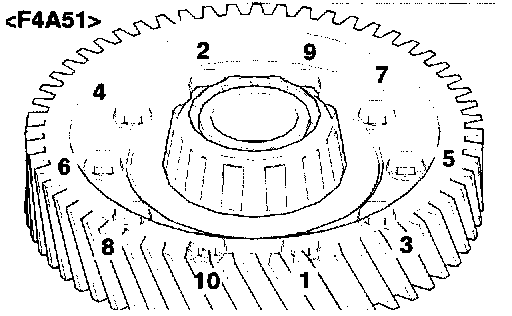 Apply ATF to the bolt, and then tighten the bolts to the specified torque in the sequence shown.