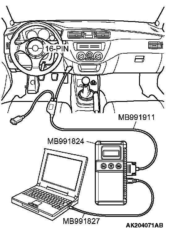 1. Connect scan tool MB991958 to the data link connector.