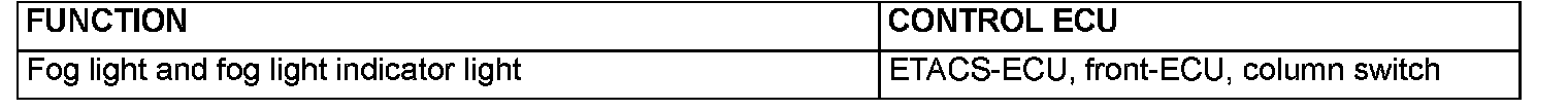The following ECUs affect the functions and control of the fog lights and fog light indicator light.