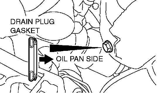 4. Install a new drain plug gasket so that it faces in the direction shown in the illustration, and then tighten the drain plug to the specified torque.