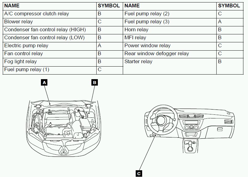 Main Relay (Computer/Fuel System): Locations