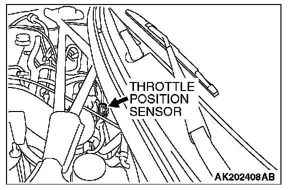 1. Disconnect the throttle position sensor connector and connect the special tool MB991348 in between. (All terminals should be connected.)