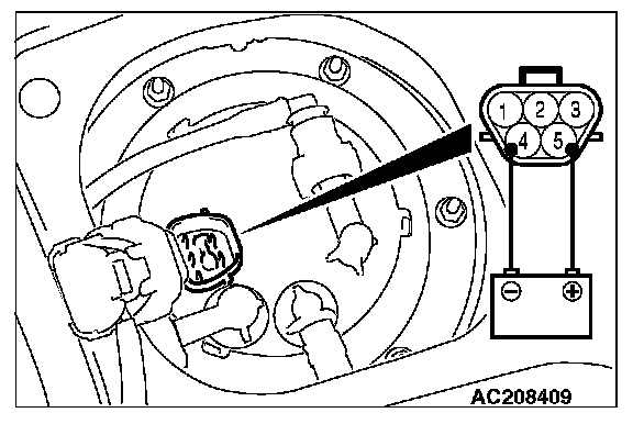 5. When the fuel pump drive connector is attached directly to the battery check if the sound of the fuel pump operation can be heard.