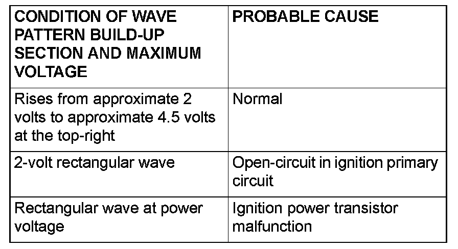 Point: Condition of wave pattern build-up section and maximum voltage (Refer to abnormal wave pattern examples 1 and 2).