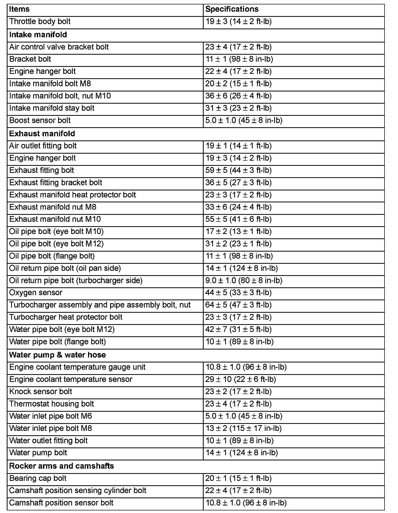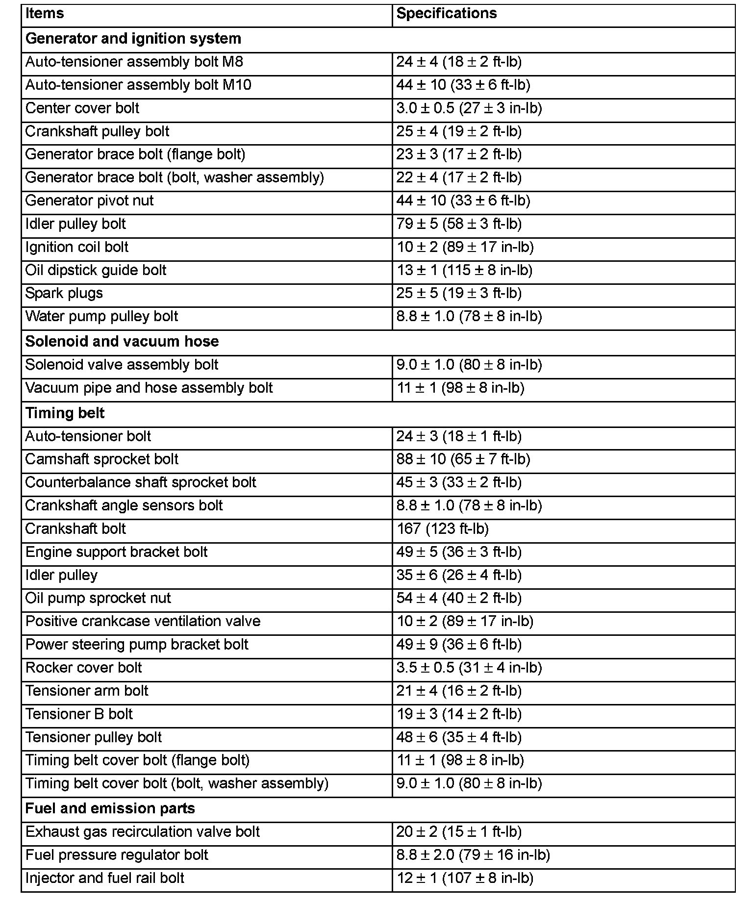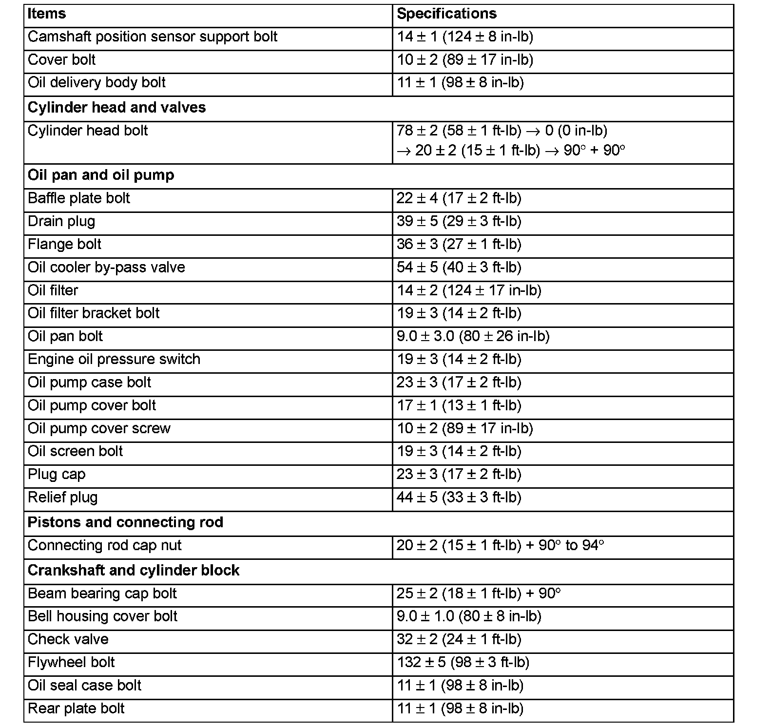 Fastener Tightening Specifications