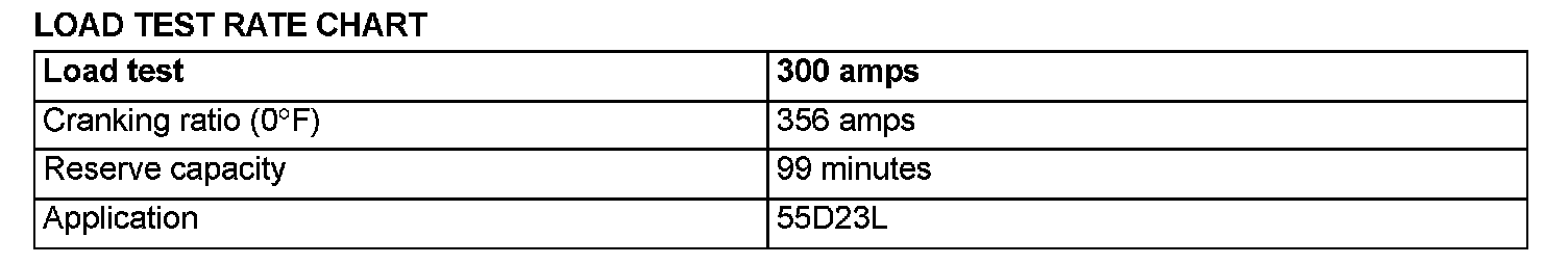 2. Load the battery at the recommended discharge rate (See LOAD TEST RATE CHART) for 15 seconds.