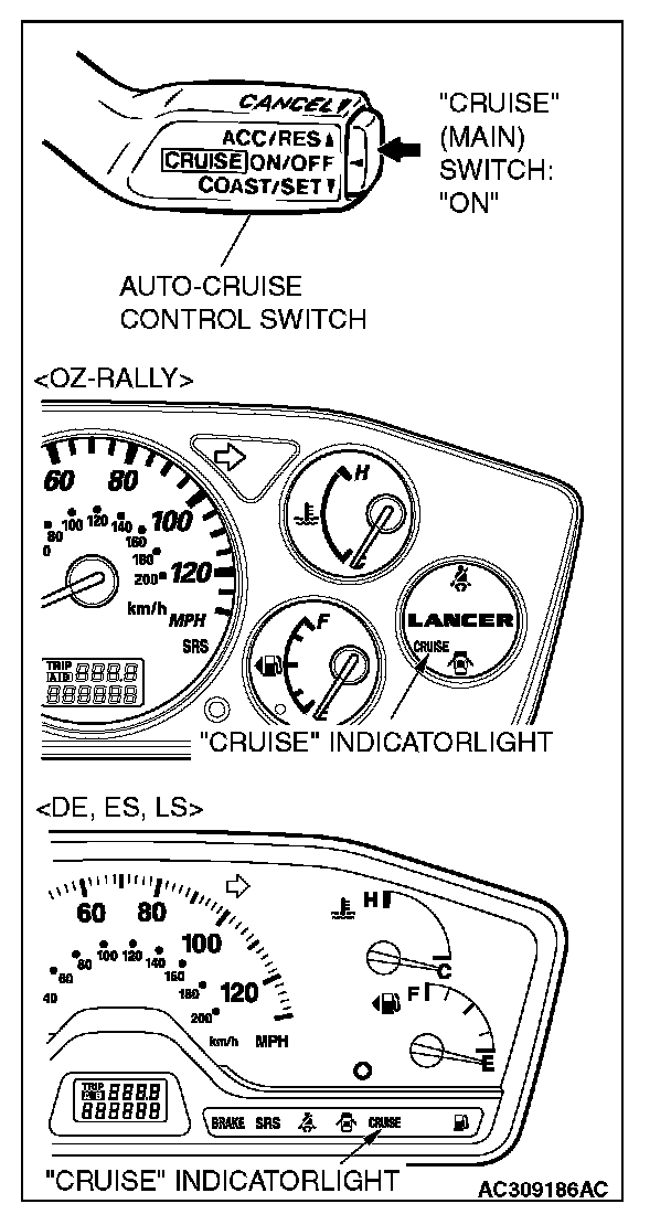 1. Switch "ON" the "CRUISE" (MAIN) switch.
