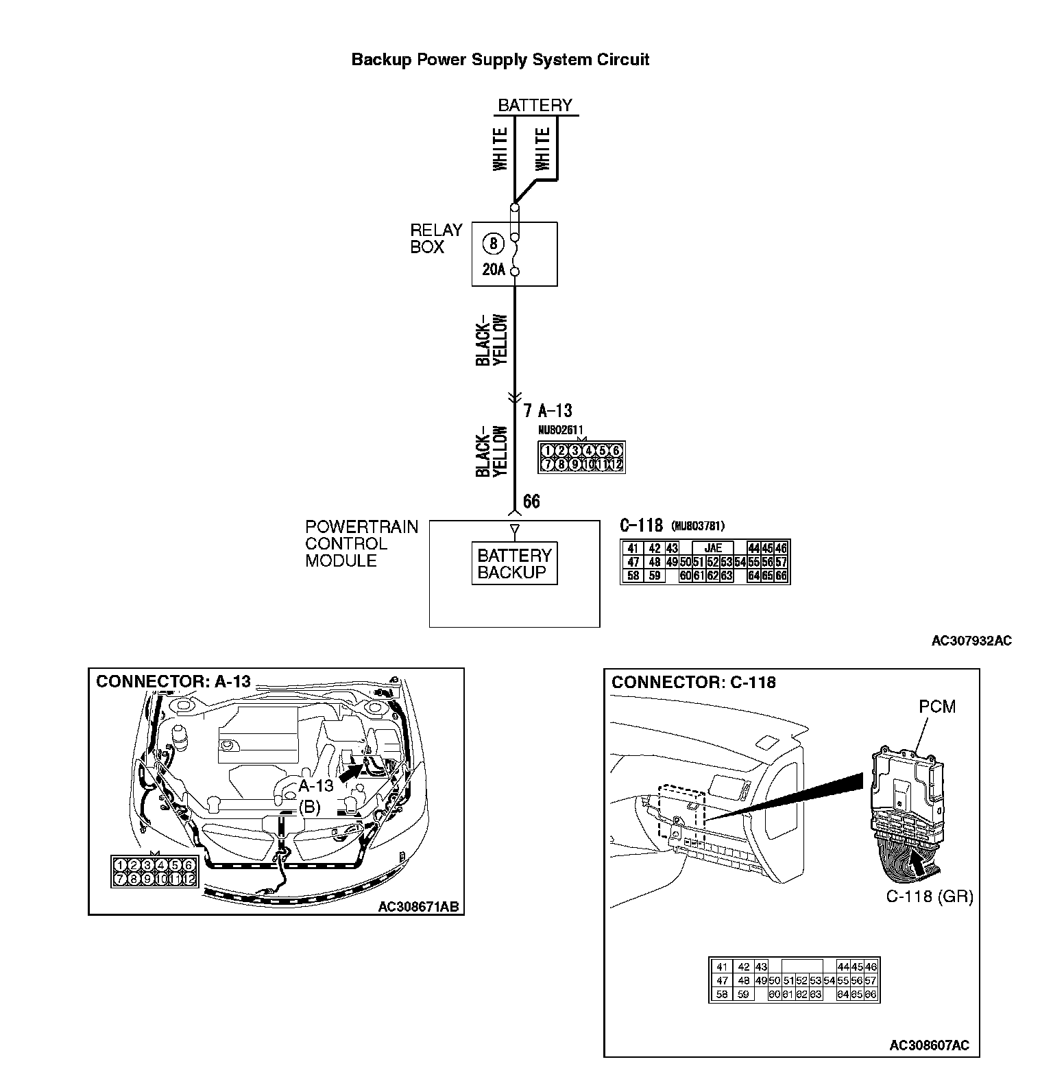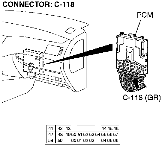 STEP 4. Check the harness for open circuit between PCM connector C-118 terminal 66 and battery.