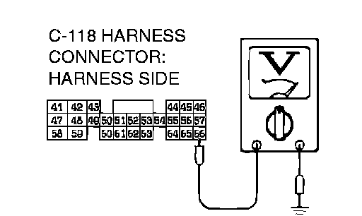 STEP 2. Measure the backup power supply voltage at PCM connector C-118 by backprobing.