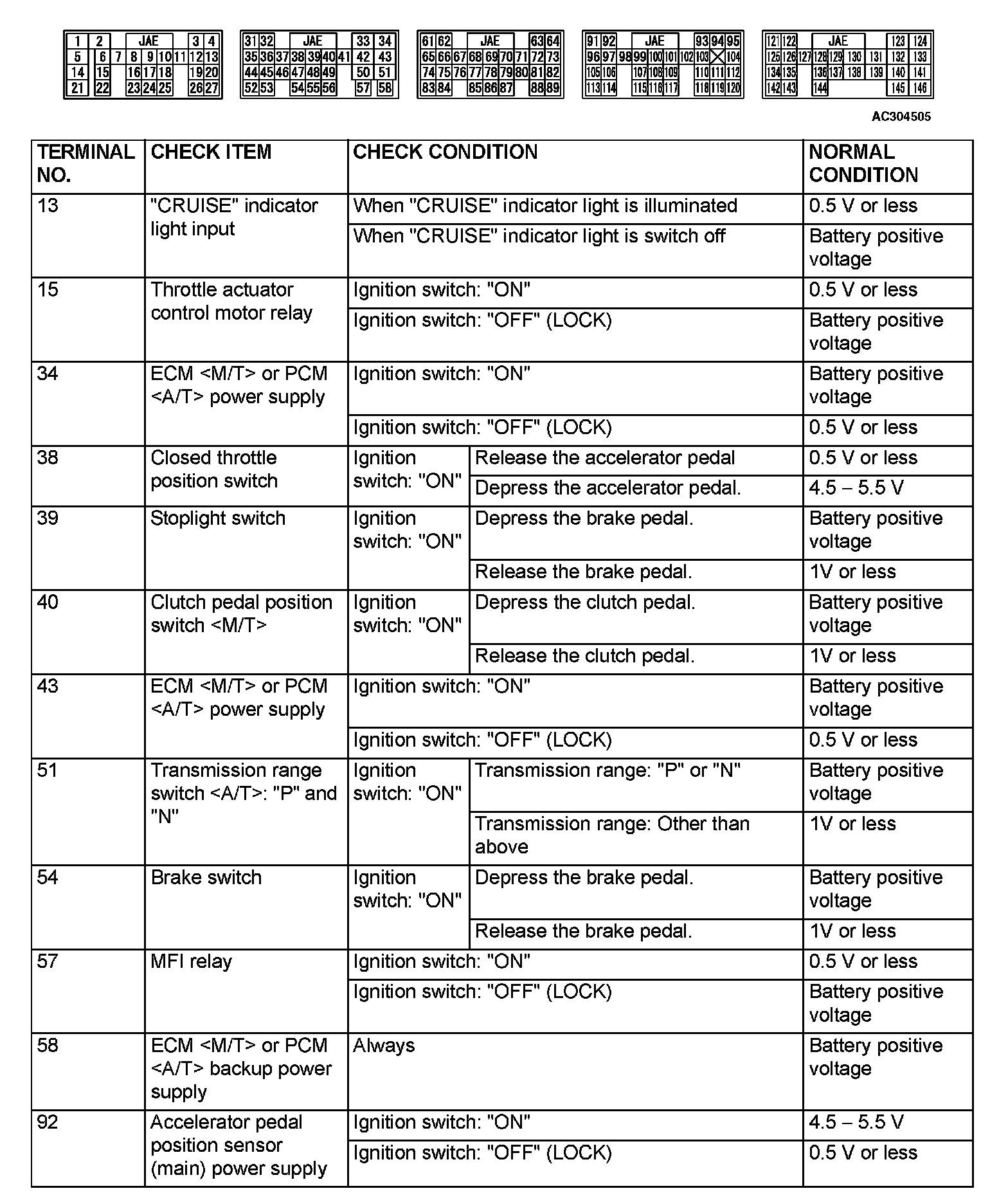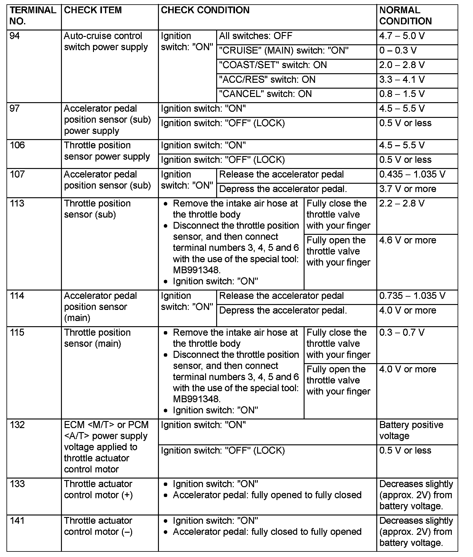 ECM<M/T> Or PCM<A/T> Terminal Voltage Reference Chart Part 2: