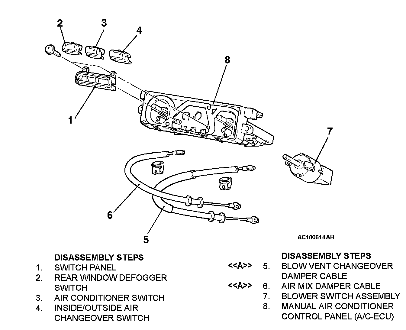 <> BLOW VENT CHANGEOVER DAMPER CABLE AND AIR MIX DAMPER CABLE REMOVAL