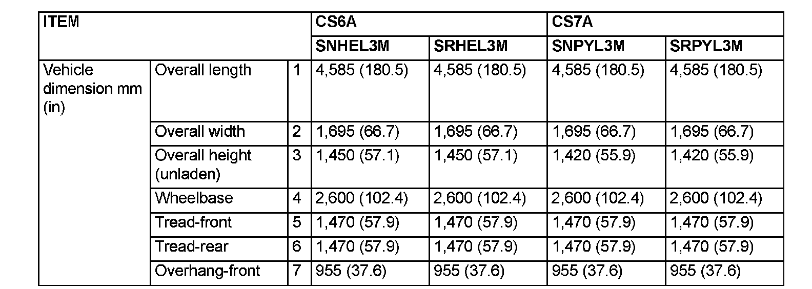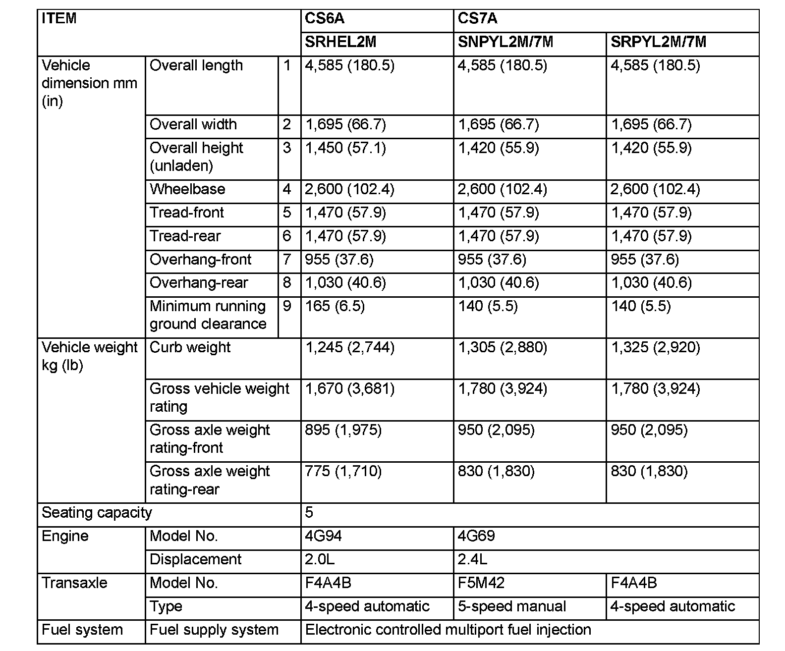 GENERAL SPECIFICATIONS VEHICLES FOR CANADA