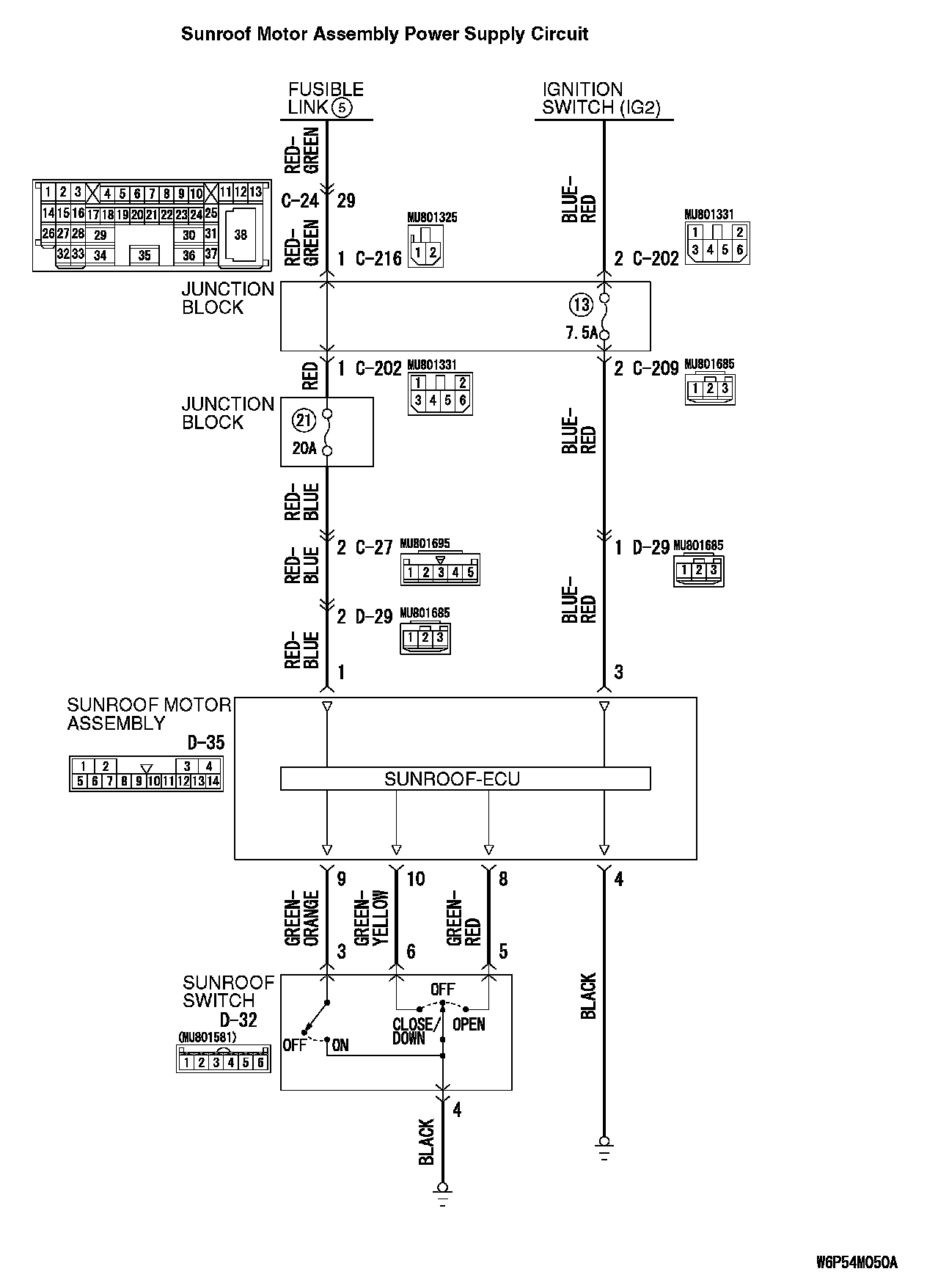 Q: Is sunroof switch connector D-32 in good condition?