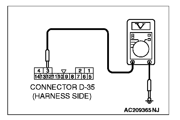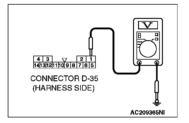 1. Disconnect sunroof motor assembly connector D-35 and measure the voltage available at the wiring harness side of the connector.