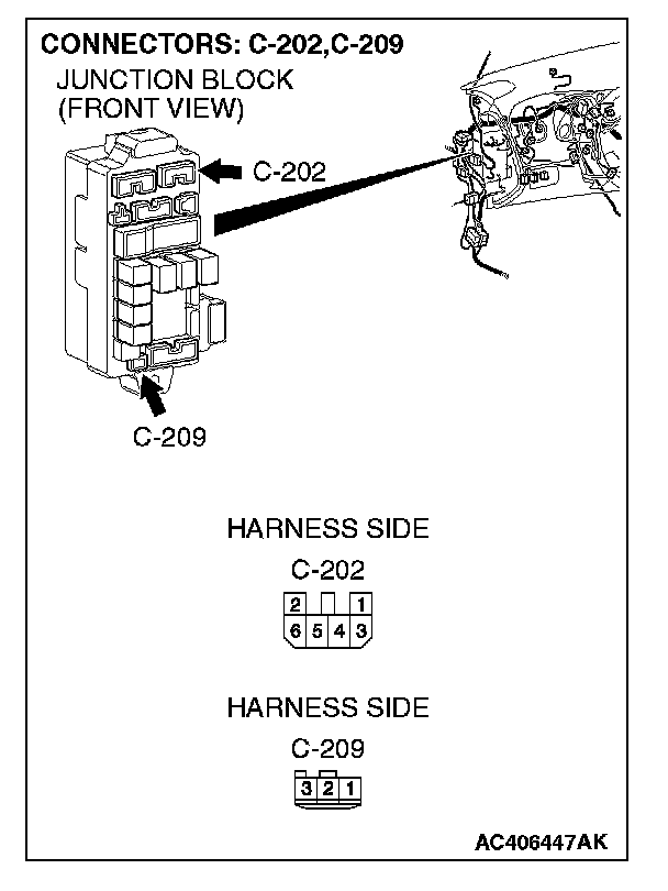 NOTE: Also check junction block connectors C-202, C-209 and intermediate connector D-29 for loose, corroded, or damaged terminals, or terminals pushed back in the connector. If junction block connector C-202, C-209 or intermediate connector D-29 is damaged, repair or replace the damaged component(s) as described in Harness Connector Inspection.