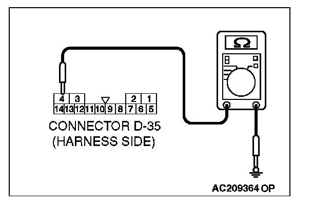 STEP 7. Check the wiring harness between sunroof motor assembly connector D-35 (terminal 4) and ground.