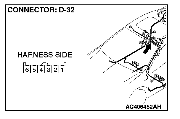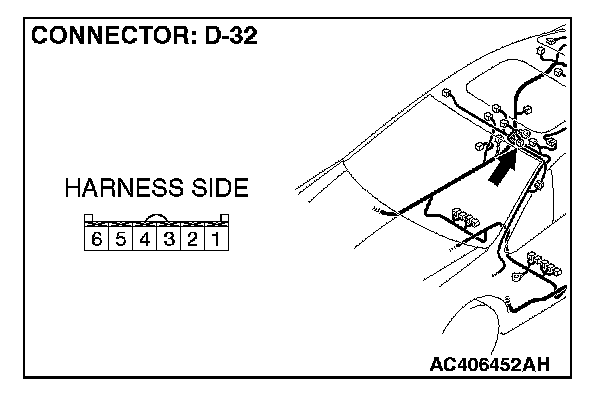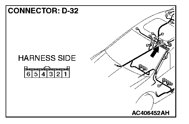 STEP 8. Check the sunroof switch connector D-32 for loose, corroded or damaged terminals, or terminals pushed back in the connector.