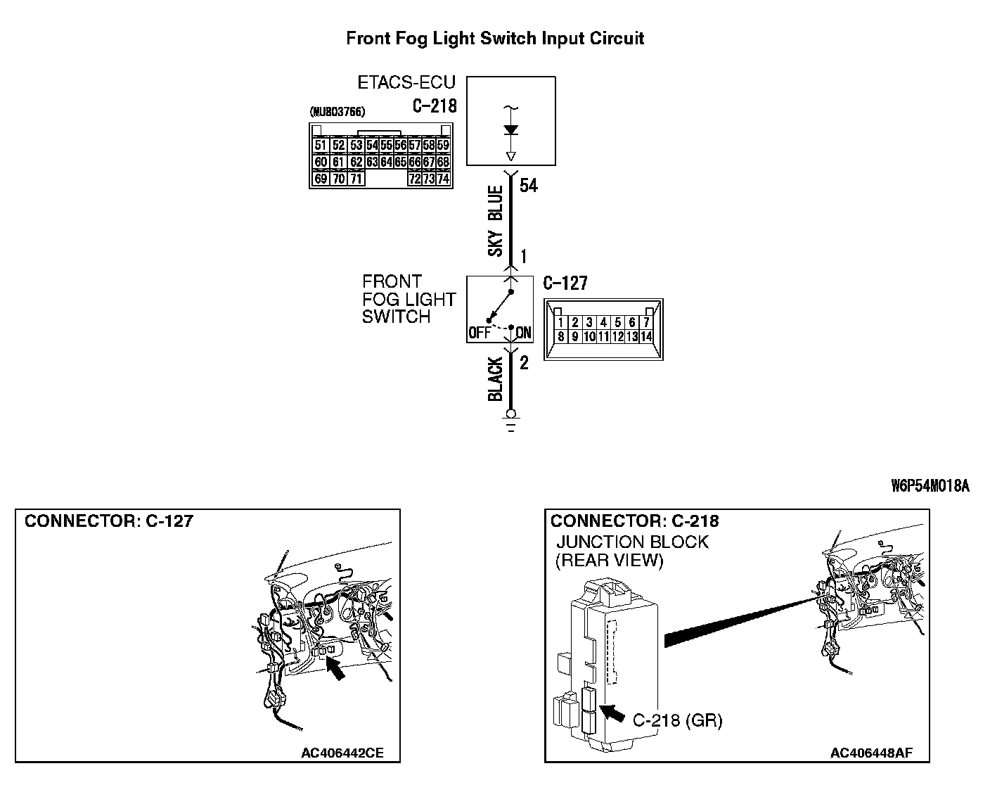 STEP 6. Check the wiring harness between front fog light switch connector C-127 (terminal 1) and ETACS-ECU connector C-218 (terminal 54).