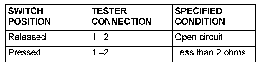 Remove the front fog light switch. Refer to Front fog light. Then check continuity between the switch terminals.
