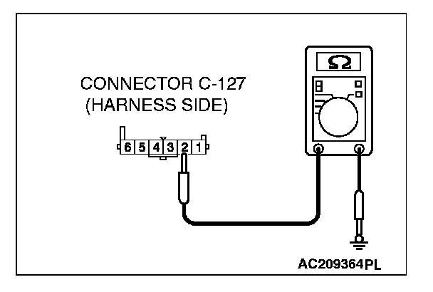2. Measure the resistance value between terminal 2 and ground.
