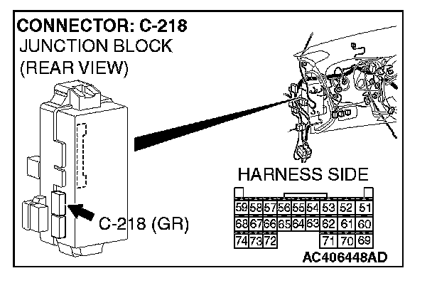 STEP 5. Check ETACS-ECU connector C-218 for loose, corroded or damaged terminals, or terminals pushed back in the connector.