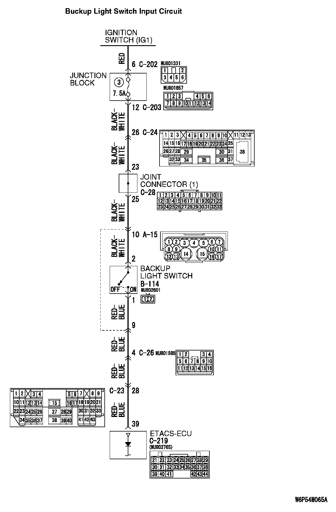STEP 6. Check the wiring harness between backup light switch connector B-114 (terminal 1) and ETACS-ECU connector C-219 (terminal 39).