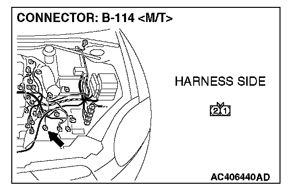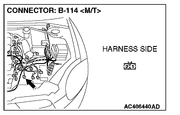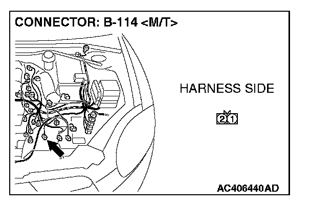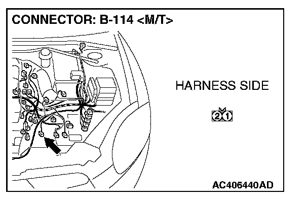 STEP 1. Check backup light switch connector B-114 for loose, corroded or damaged terminals, or terminals pushed back in the connector.