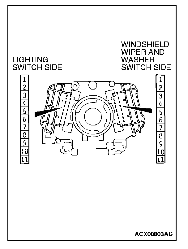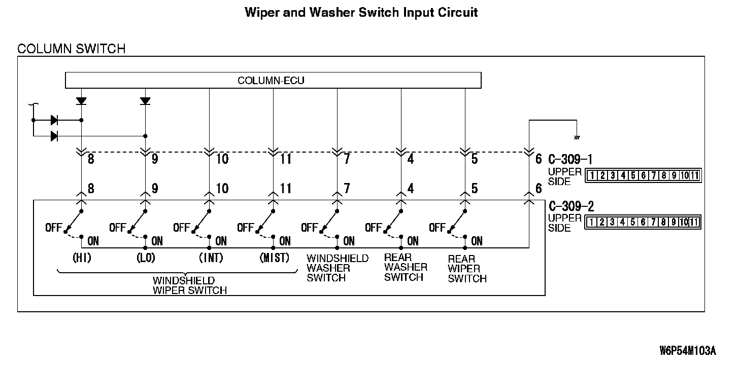 2. If the equipment described in "CIRCUIT OPERATION" work normally, the input signal from the column switch (wiper and washer switch) should be normal.