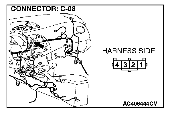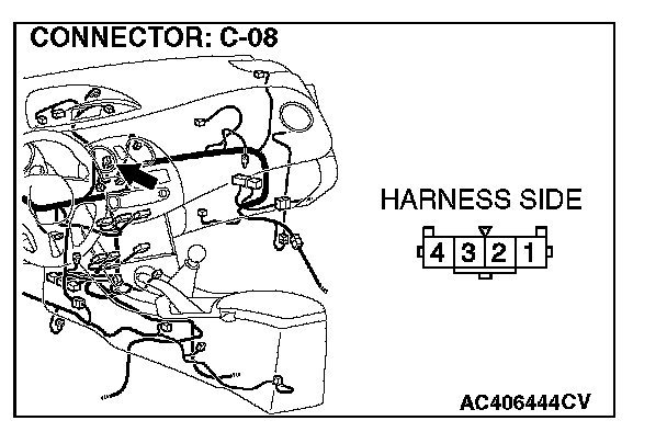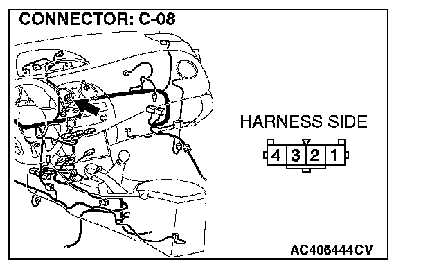 STEP 4. Check the wiring harness between hazard warning light switch connector C-08 (terminal 2) and ground.