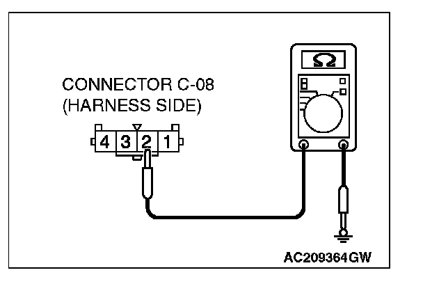 STEP 3. Check the ground circuit to the hazard warning light switch. Measure the resistance at hazard warning light switch connector C-08.