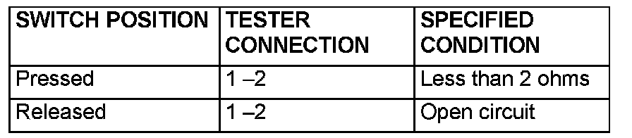 Remove the hazard warning light switch. Refer Hazard Warning Light Switch. Then check continuity between the switch terminals.