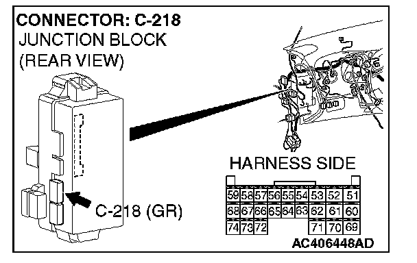 STEP 5. Check ETACS-ECU connector C-218 for loose, corroded or damaged terminals, or terminals pushed back in the connector.