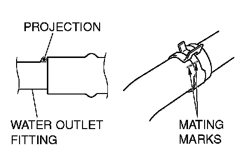 1. Insert radiator upper hose until it contacts the projection on the water outlet fitting.