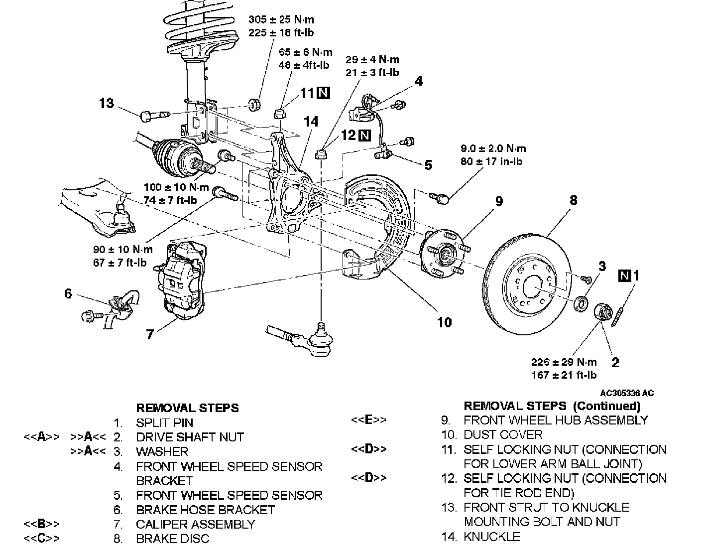 [[E]] FRONT WHEEL HUB ASSEMBLY REMOVAL
