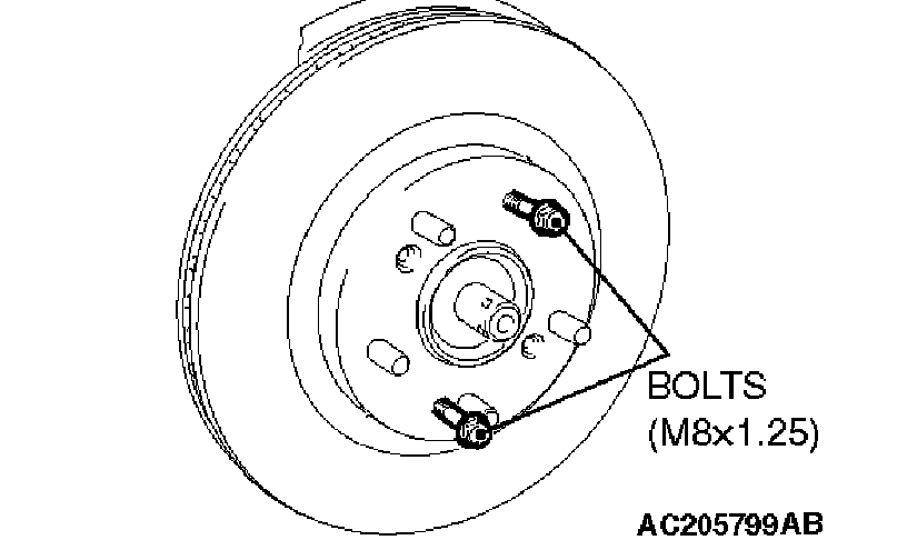 If the brake disc is seized, install a M8 x 1.25 bolts as shown, and remove the disc by tightening the bolts evenly and gradually.