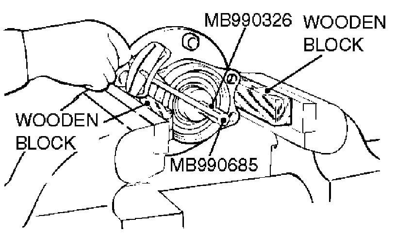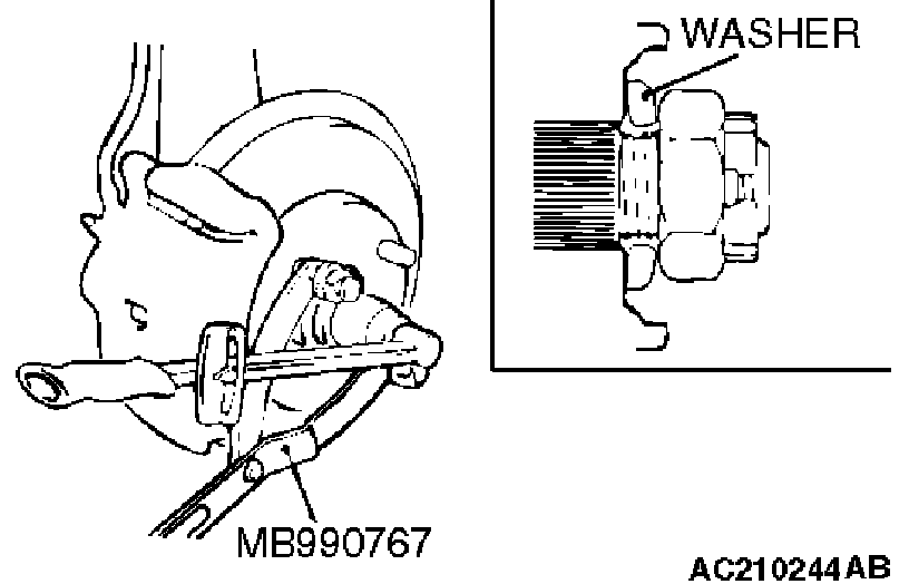 Use special tool MB990767 to fix the hub and remove the drive shaft nut.
