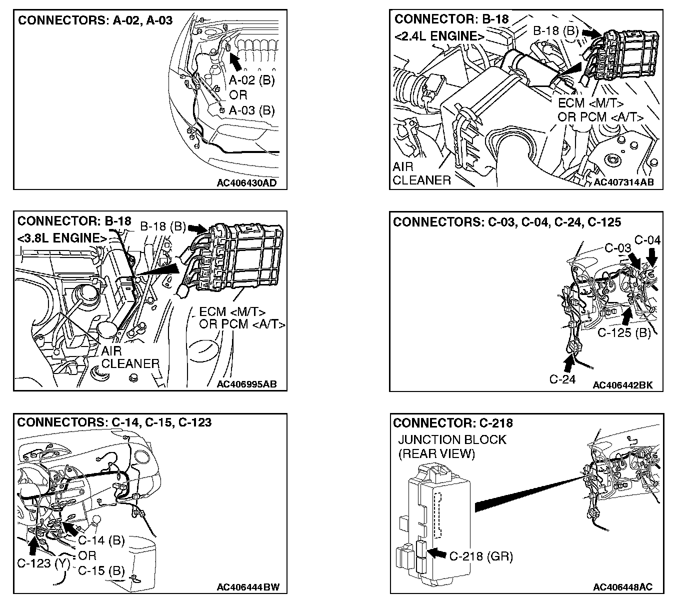 1. Disconnect intermediate connector C-24 and ABS-ECU connector A-02