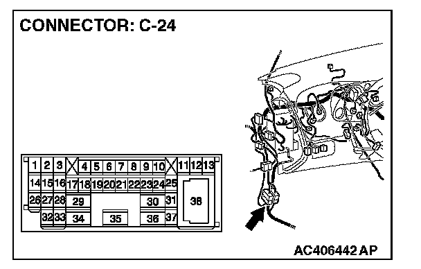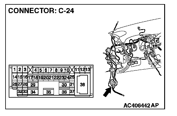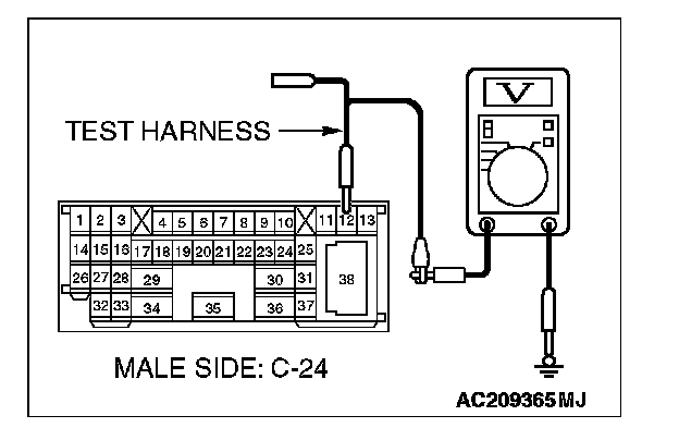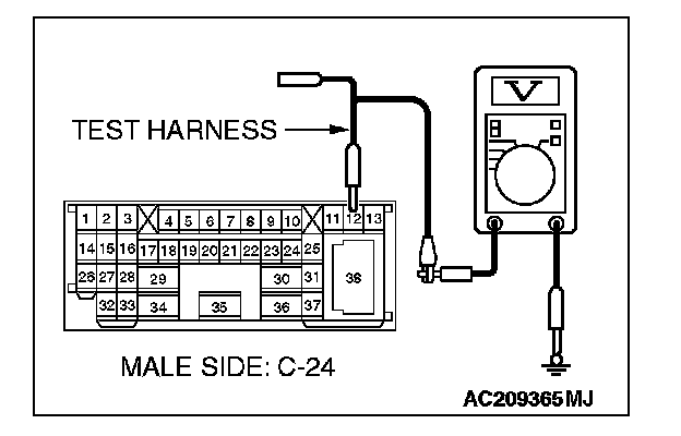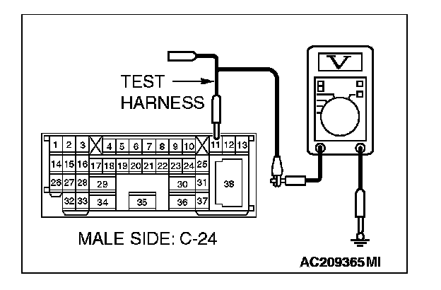 1. Disconnect intermediate connector C-24, and measure the voltage at the male side (at front wiring harness side).