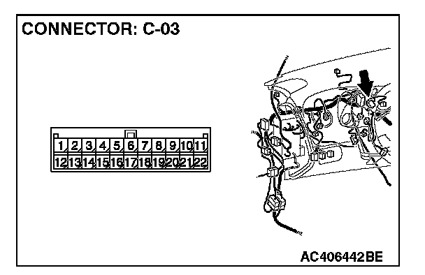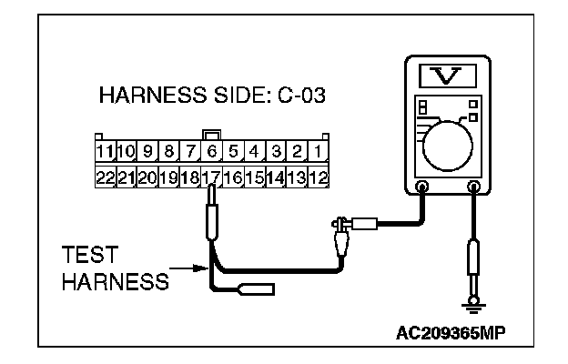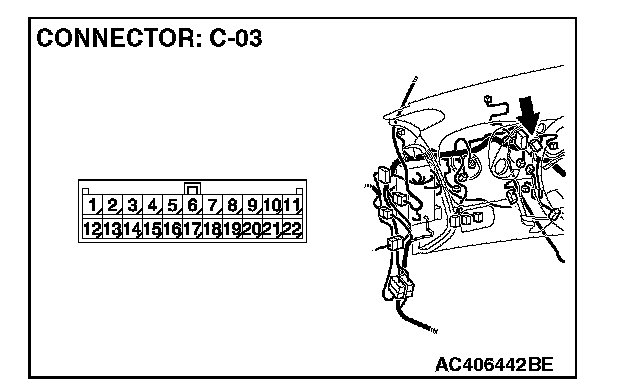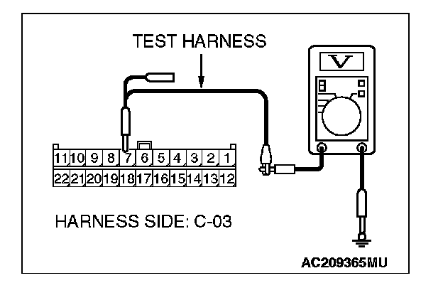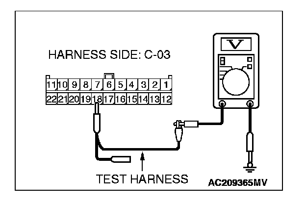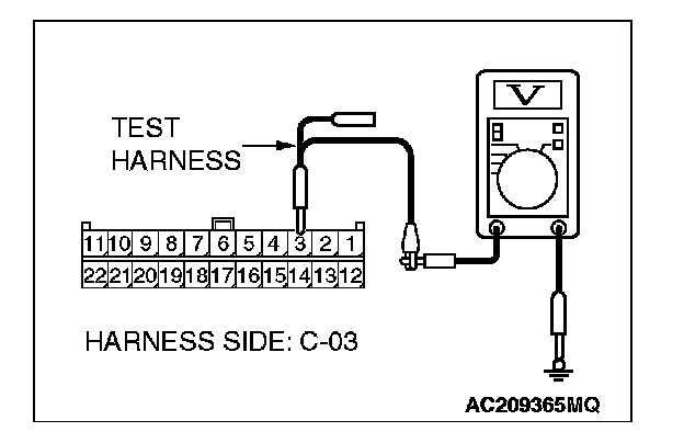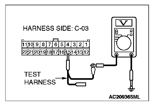 1. Disconnect joint connector (3) C-03, and measure the voltage at the wiring harness side of joint connector (3) C-03.