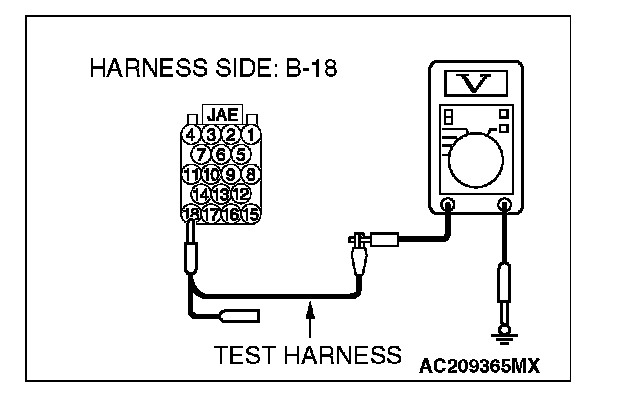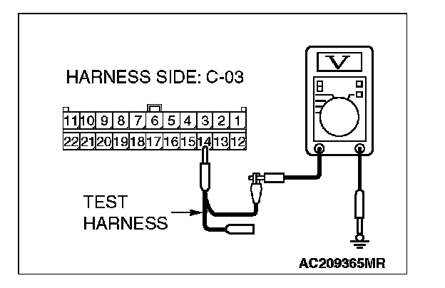 4. Measure the voltage between joint connector (3) terminal 14 and body ground.